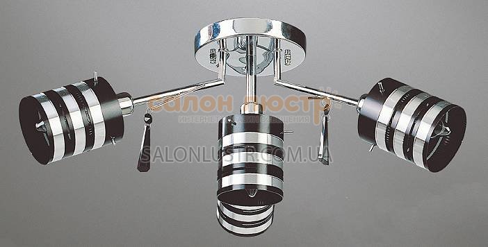 Люстра стельова виробництва компанії Tinko; Матеріал: метал, скло; Колір основи: хром; Колір плафона: хром+чорний; Декоративний елемент: чорне скло; Висота: 23 см; діаметр: 54 см; лампи: 4 х Е-14 х 60 Вт.