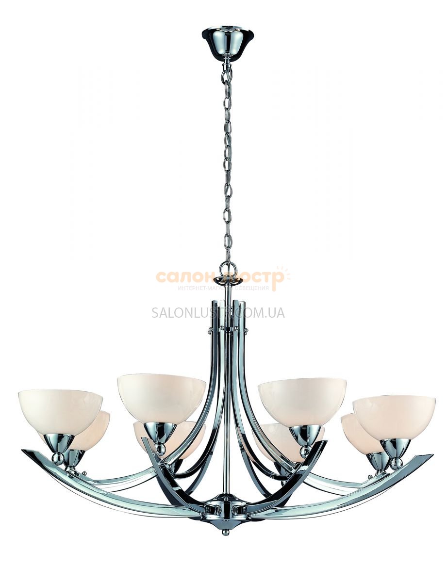 Люстра в стилі модерн виробництва компанії WUNDERLICHT (Німеччина); Матеріали: метал, скло; Колір основи: хром; Колір плафона: білий; Висота: 60-120 см; ширина: 86 см; лампи: 8 х Е14 х 60Вт.