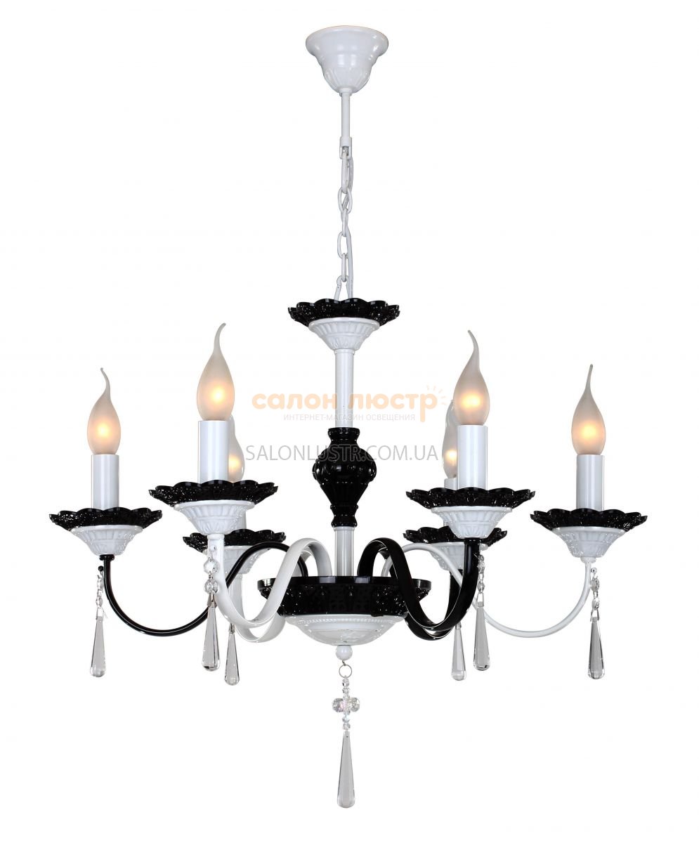 Люстра класична виробництва компанії " Wunderlicht" (Німеччина); Матеріал: метал; Колір підстави: чорний-білий; Колір декору: прозорий; Висота: 60-80 см; ширина: 62 см; лампи: 6 х E14 х 60 Вт.