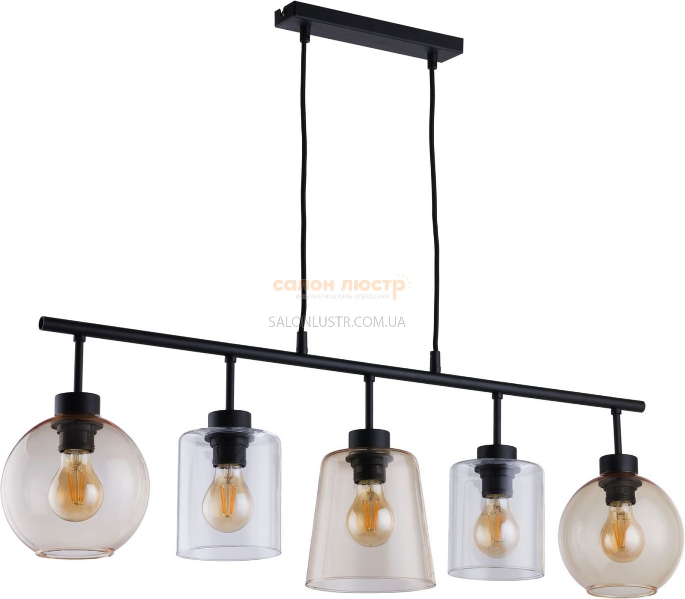 Висота: 36-130 см; довжина: 91 см; лампи: 5 х Е27 х 60 Вт.