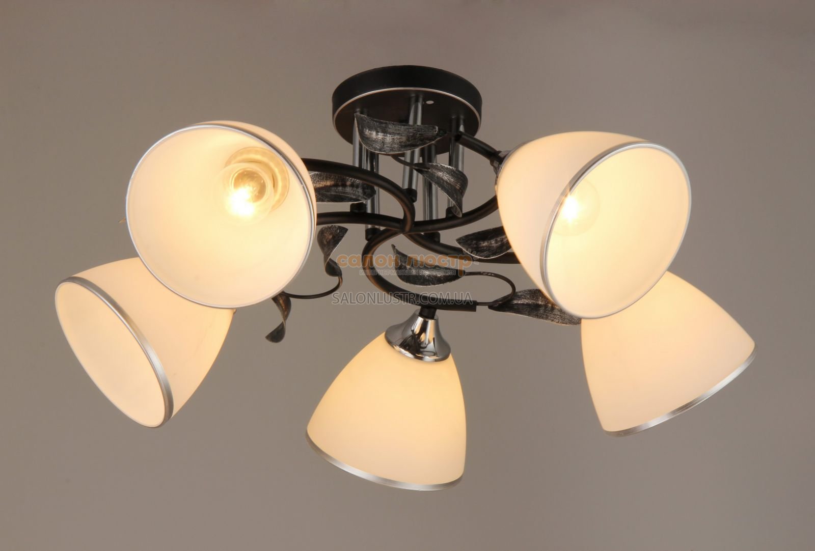 Висота: 25 см; ширина: 49 см; лампи: 5 х Е27 х 60 Вт.