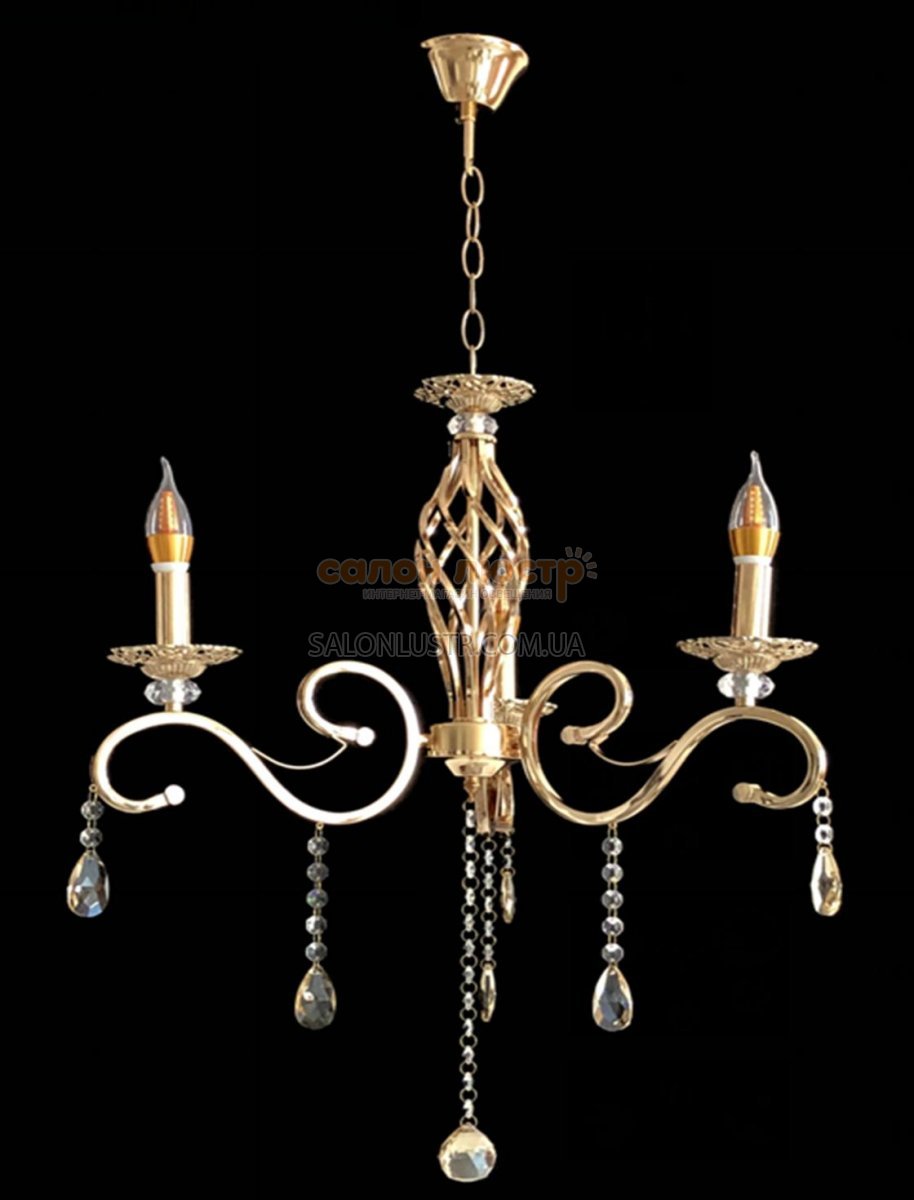 Люстра свічі виробництва компанії Sirius; Матеріал: метал, скло; Колір підстави: золото; Висота: 55-65 см; діаметр: 50 см; лампи: 3 х Е14 х 60 Вт.