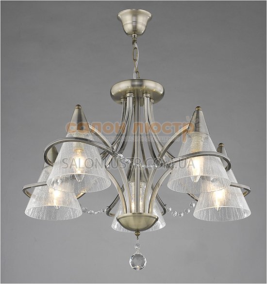 Висота: 65 см; діаметр: 59 см; лампи: 5 х Е-14 х 60 Вт.
