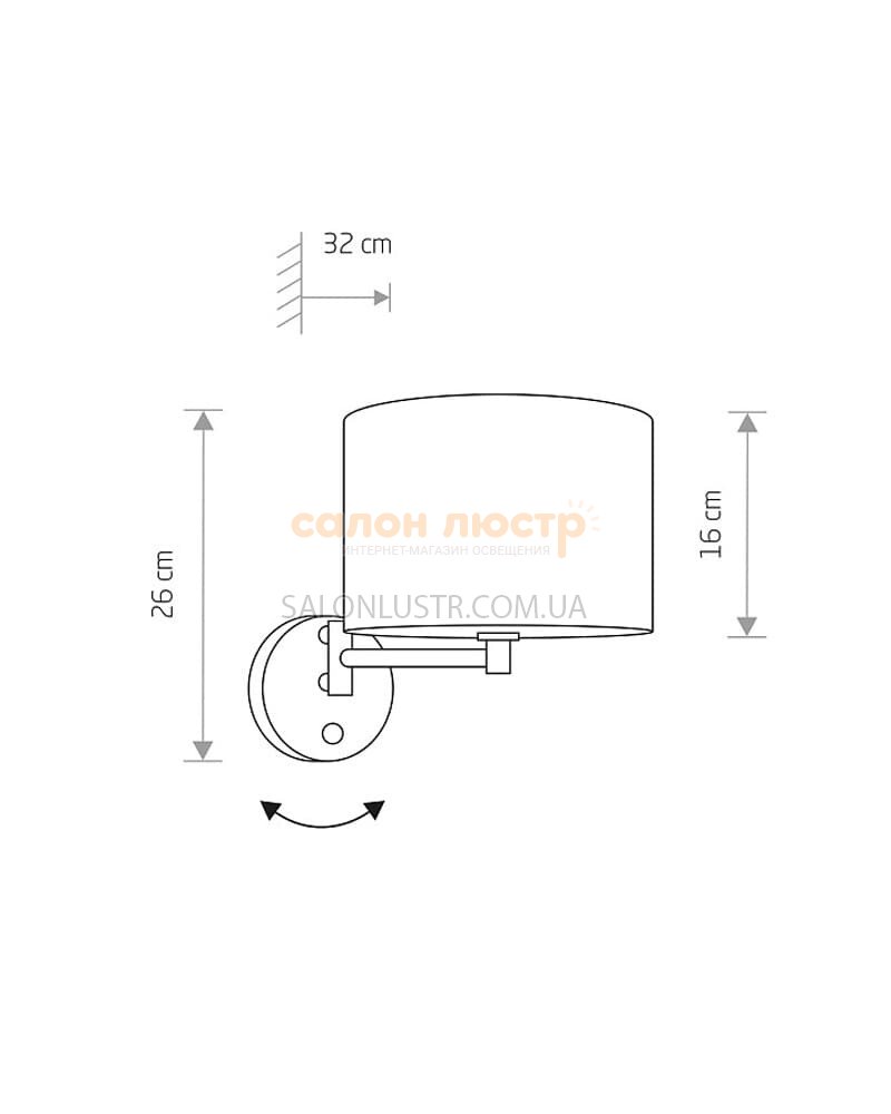 Висота: 26 см; ширина: 23 см; відступ: 31 см; лампи: 1 х Е14 х 60 Вт.