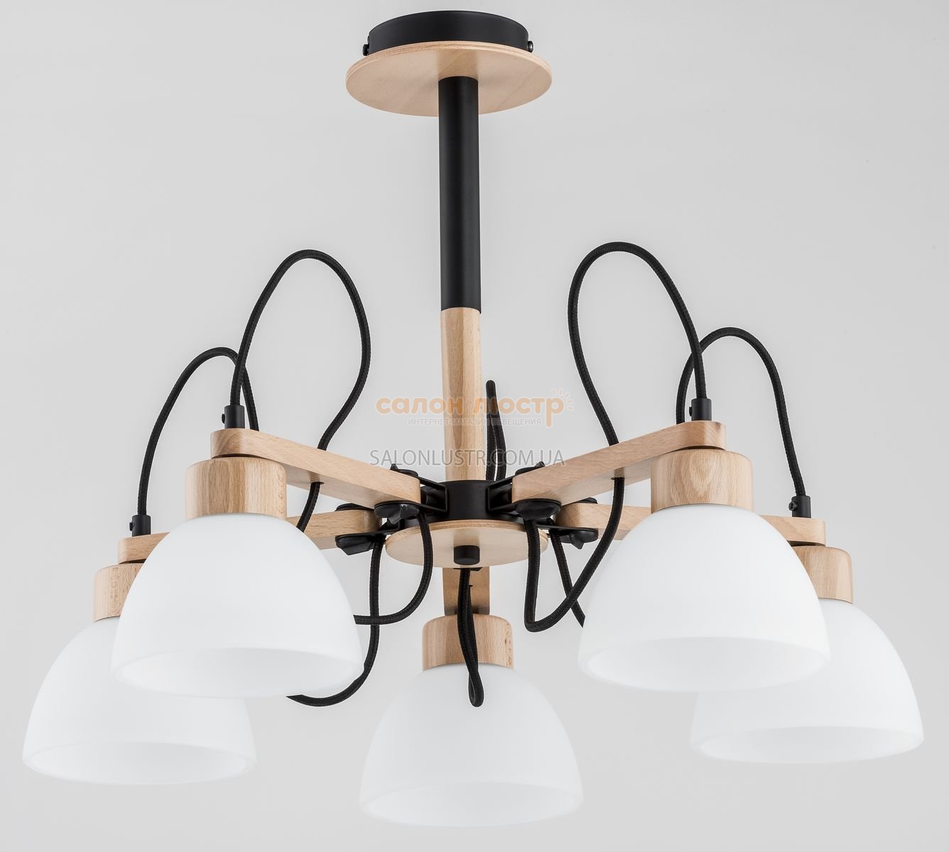 Висота: 46 см; діаметр: 59 см; лампи: 5 х Е27 х 60 Вт.