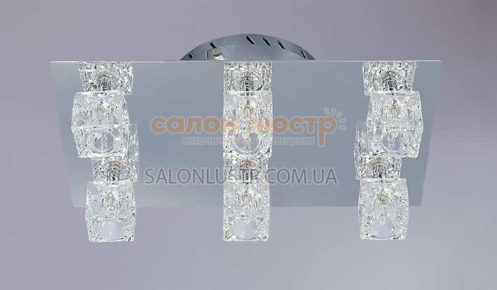 Люстра стельова виробництва компанії TINKO; Матеріал: метал, скло; Колір основи: золото; Колір плафона: прозорий; Висота: 15 см; діаметр: 50х30 см; лампи: 6 х G4 12V 20W ; Лампочки в комплекті.