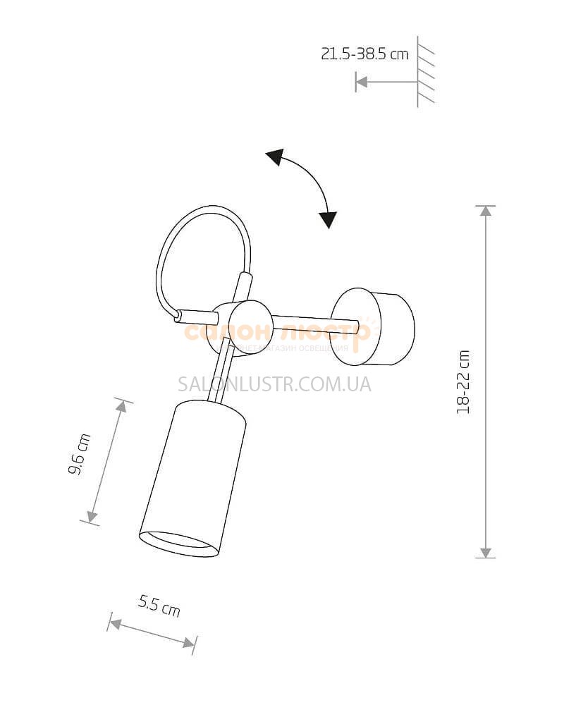 Висота: 14 см; ширина: 7 см; відступ: 8-14 см; лампи: 1 x GU10 х 35Вт.