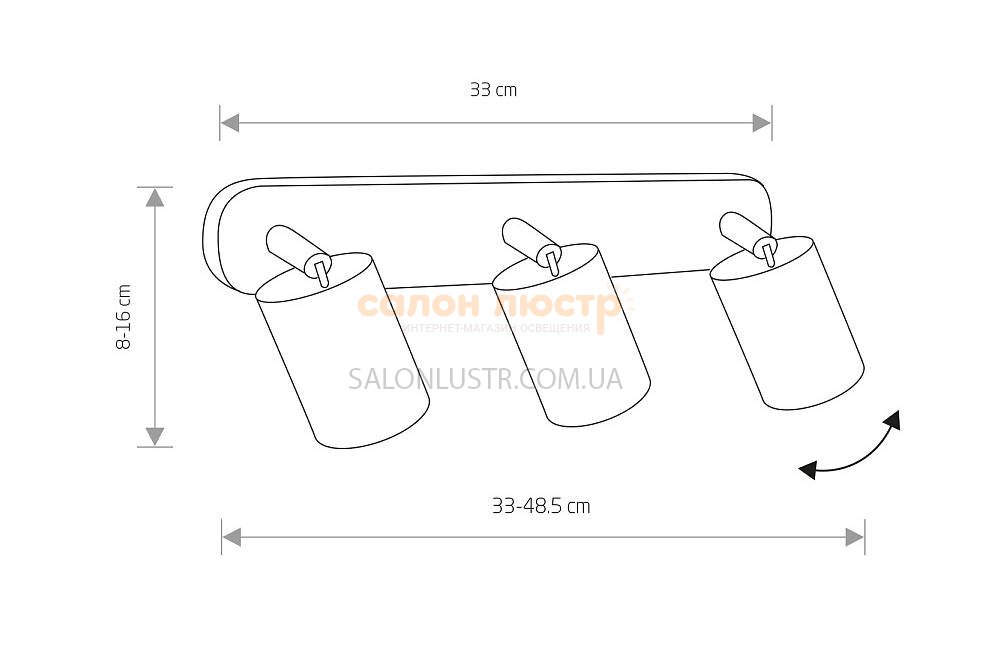 Висота: 8-16 см; ширина: 33-48 см; лампи: 3 x GU10 х 35 Вт.