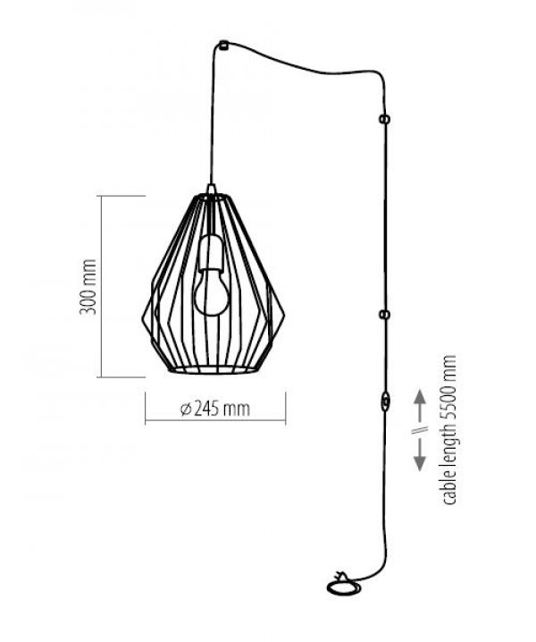 Висота: 30 см; ширина: 24.5 см; проведення: 550 см; лампа: 1 х Е-27 х 60 Вт.