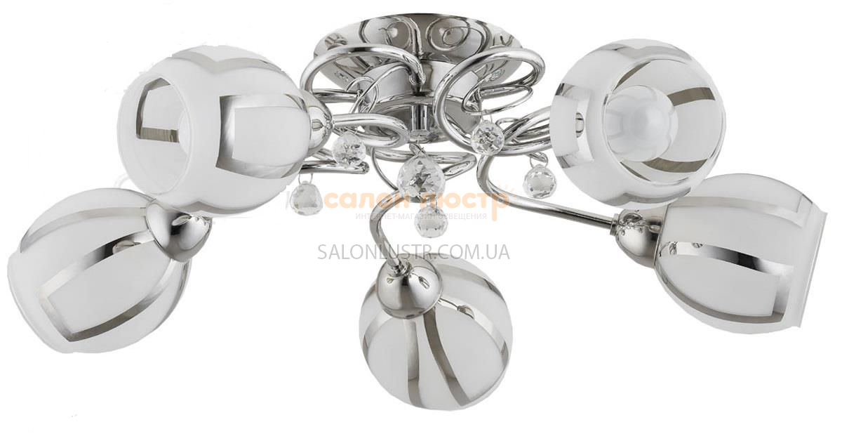 Висота: 17 см; діаметр: 53 см; лампи: 5 х Е-14 х 60 Вт.