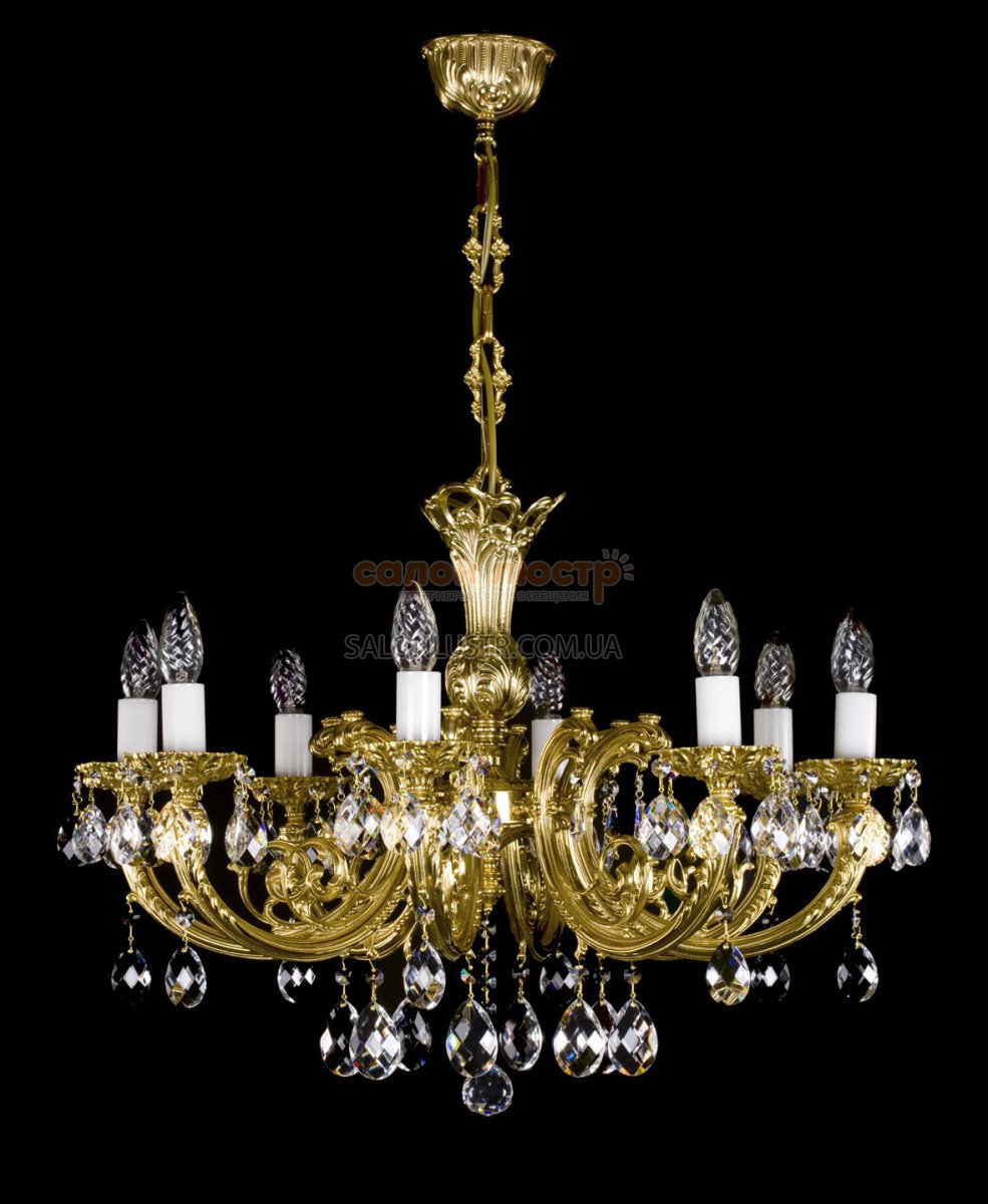 Люстра кришталева виробництва чеської компанії Art Glass; Матеріал: метал, кришталь; Колір (підстави): Gold (золото); Тип (кришталю): Зlassic (прозорий); Висота: 48 см; діаметр: 67 см; лампи: 8 х Е-14 х 40 Вт.