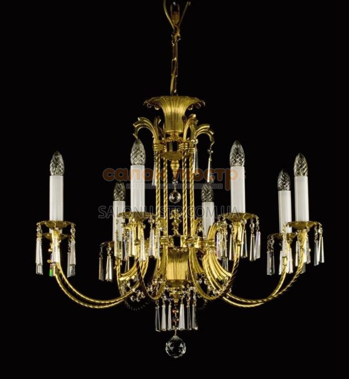 Люстра кришталева виробництва чеської компанії Art Glass; Матеріал: метал, кришталь; Колір (підстави): Gold (золото); Тип (кришталю): Crystal Exclusive(вищої якості); Висота: 64 см; діаметр: 74 см; лампи: 8 х Е-14 х 40 Вт.