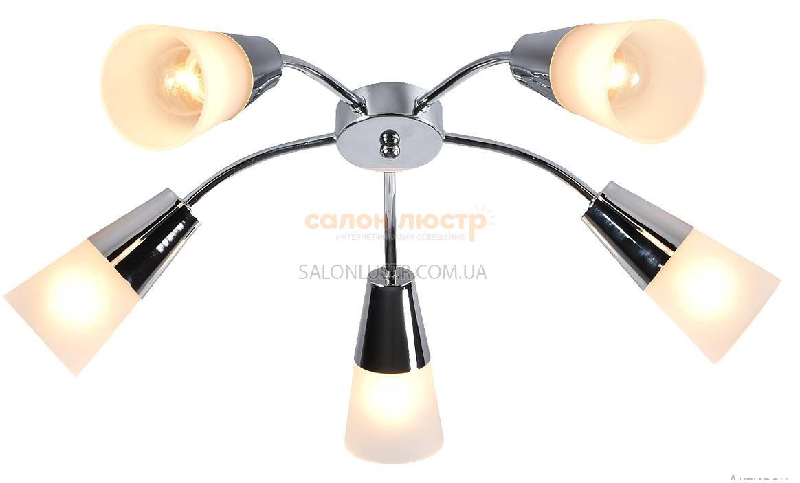Висота: 17 см; ширина: 56 см; лампы: 5 х Е14 х 60 Вт.