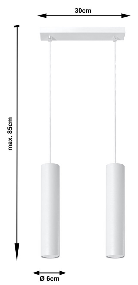 Висота: 85 см; ширина: 30 см; лампи: 2 х GU10 х 40 Вт.