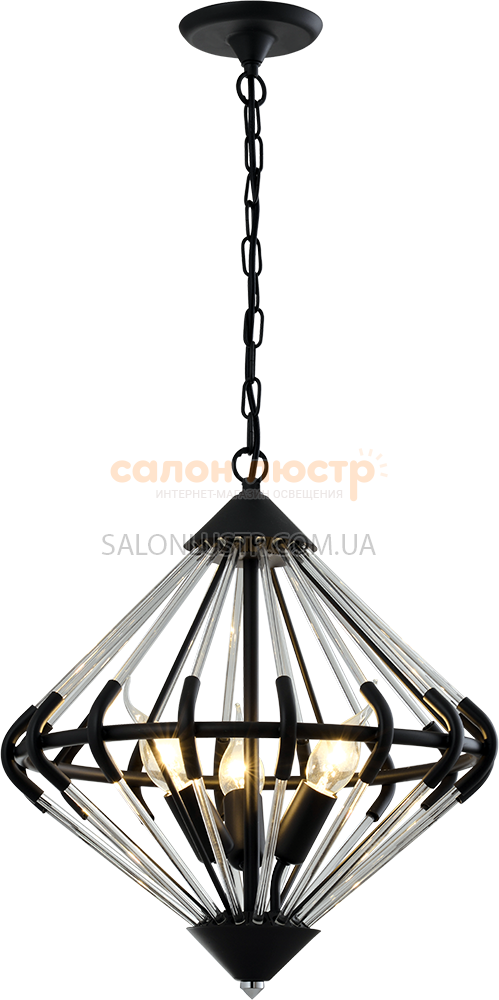 Люстра-Підвіс виробництва компанії "Wunderlicht" (Німеччина); Матеріал: метал, скло; Колір підстави: чорний+хром; Колір плафона: чорний+прозорий; Висота: 50-78 см; діаметр: 38 см; лампи: 3 х Е-14 х 60 Вт.