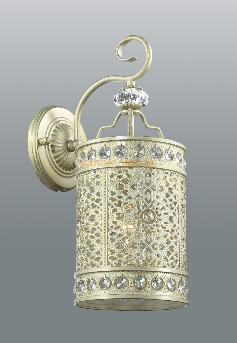 Світильник настінний(бра) виробництва компанії WUNDERLICHT (Німеччина); Матеріали: метал, кришталь; Колір підстави: бежевий із золотою патиною; Колір плафона: бежевий із золотою патиною; Висота: 39 см; ширина: 16 см; лампи: 1 х Е14 х 60Вт.