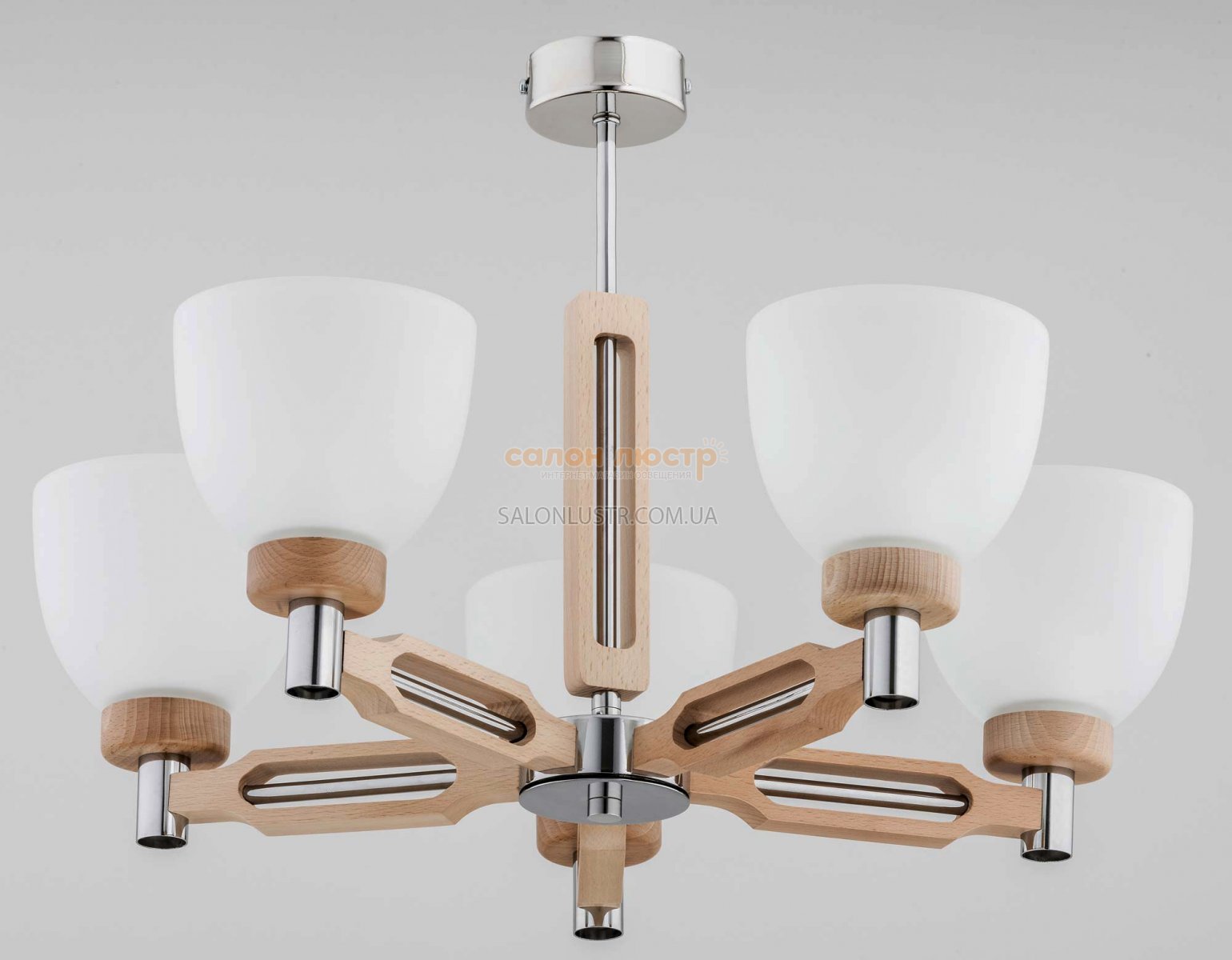 Висота: 38 см; діаметр: 58 см; лампи: 5 х Е27 х 60 Вт.