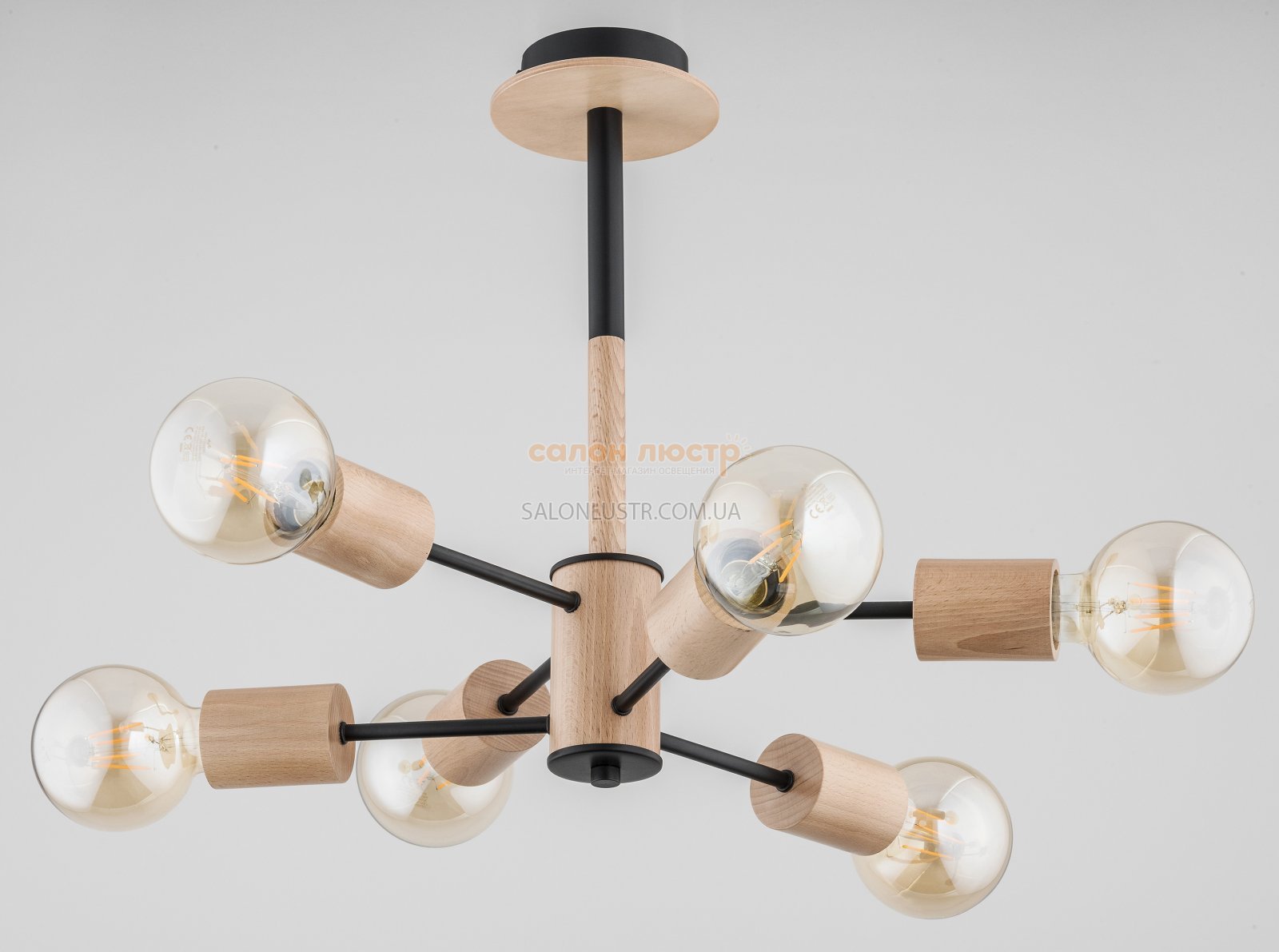 Висота: 42 см; ширина: 49 см; лампи: 6 х Е27 х 60 Вт.
