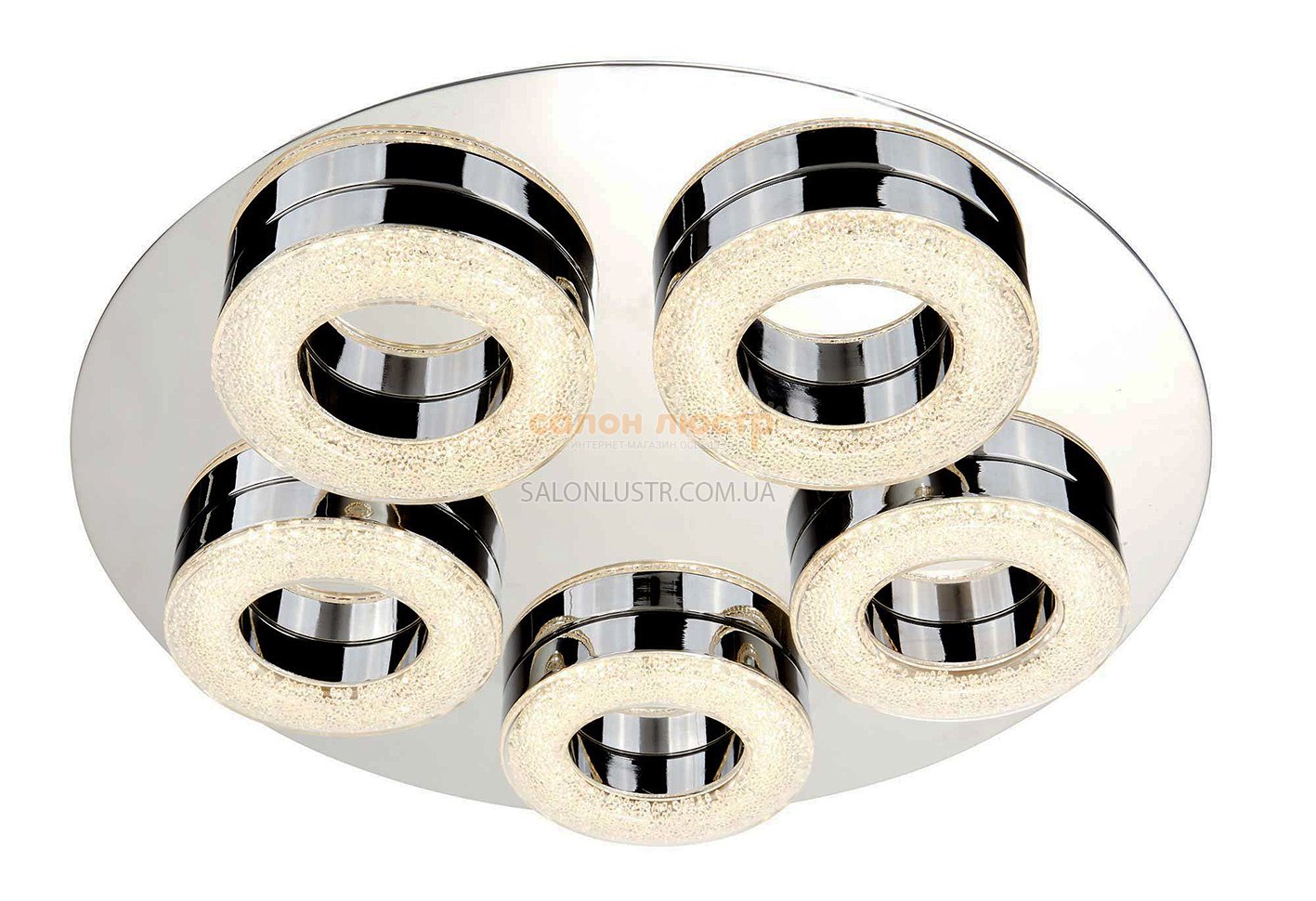Люстра світлодіодна LED виробництва компанії SEARCHLIGHT (Великобританія); Матеріал: метал, акрил; Колір підстави: хром; Колір плафона: прозорий; Висота: 7 см; ширина: 40 см; лампа: LED х 30 Вт x 4000K х 1700LM.