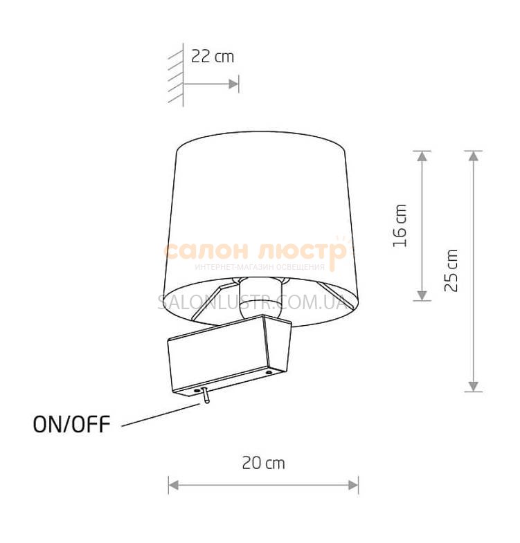 Висота: 25 см; ширина: 20 см; відступ: 22 см; лампи: 1 х Е14 х 60 Вт.