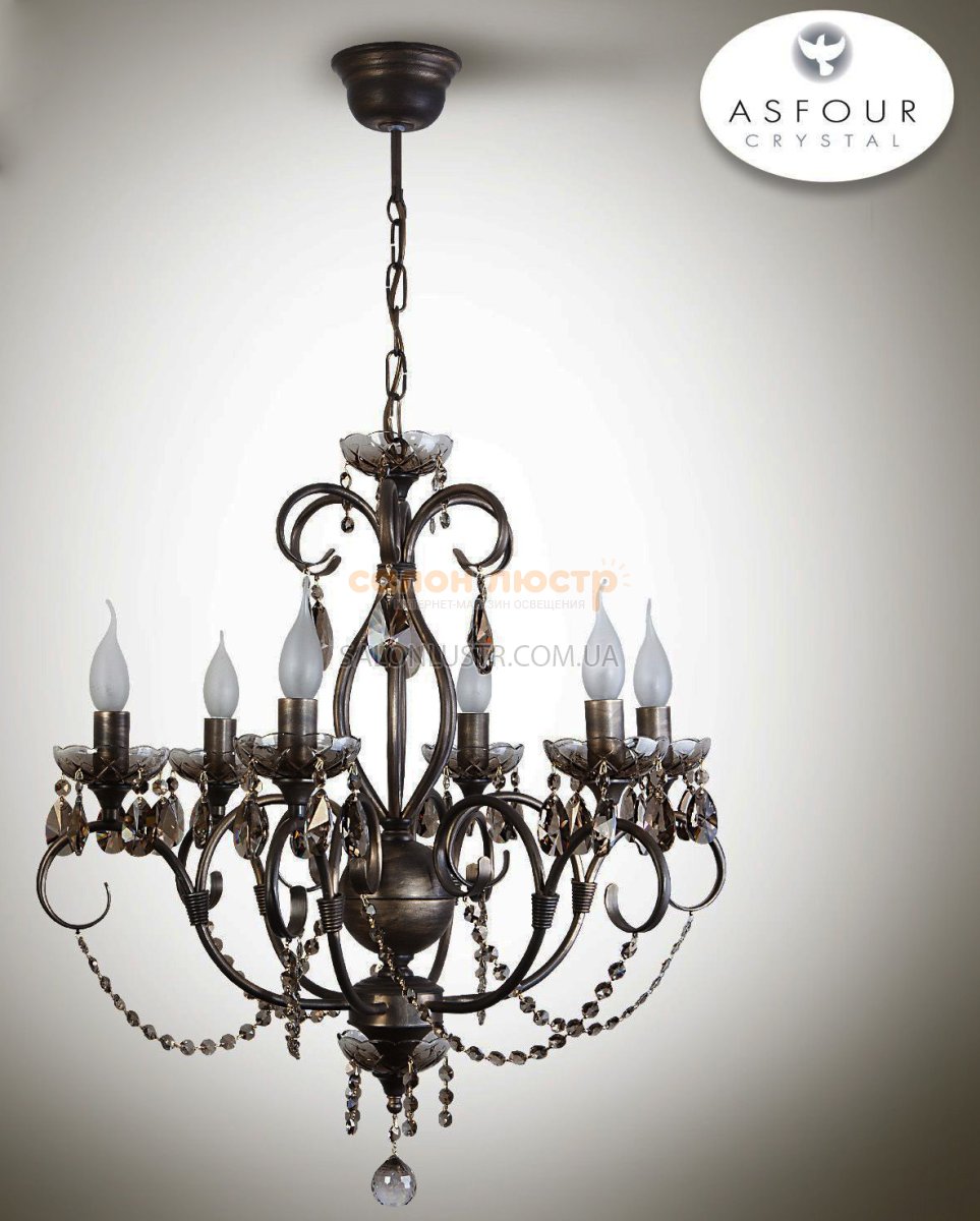 Люстра кришталева виробництва Україна; Матеріал: фарбований метал,кришталь"ASFOUR"; Колір основи: Сірокоричневий - золото - патина; Висота: 70 см; ширина: 57 см; лампи: 6 х Е-14 х 60 Вт.