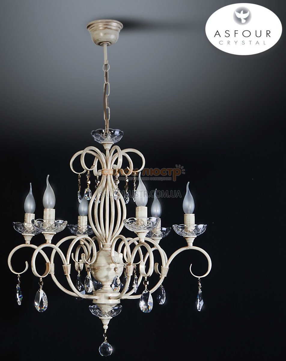 Люстра кришталева виробництва Україна; Матеріал: фарбований метал,кришталь"ASFOUR"; Колір основи: Крем - золото - патина; Висота: 70 см; ширина: 57 см; лампи: 6 х Е-14 х 60 Вт.