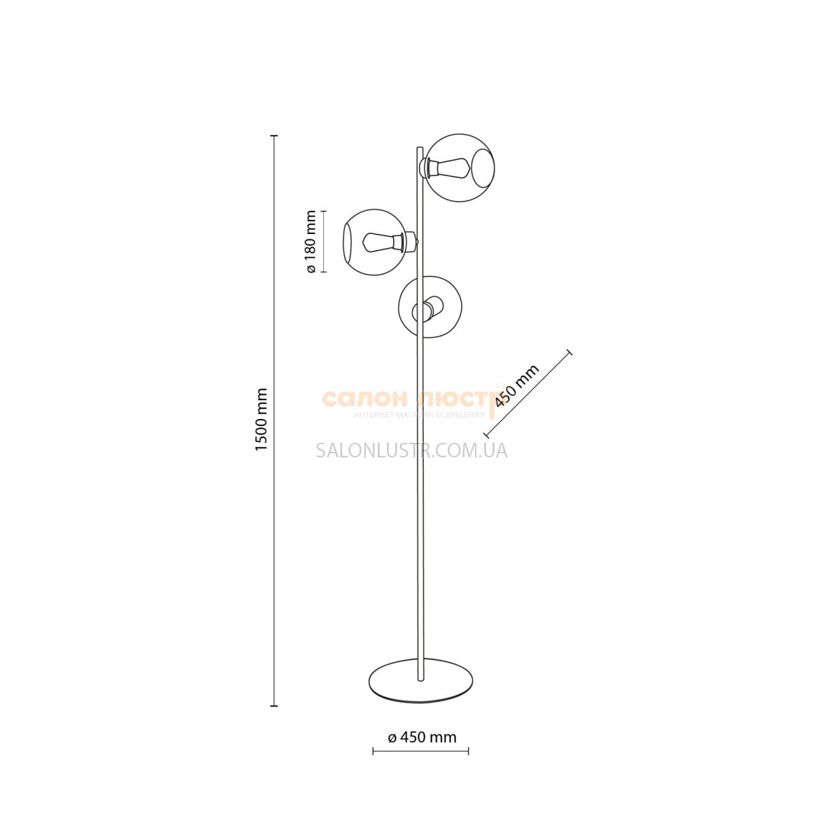Висота: 160 см; діаметр: 35 см; лампи: 3 х Е27 х 60 Вт.