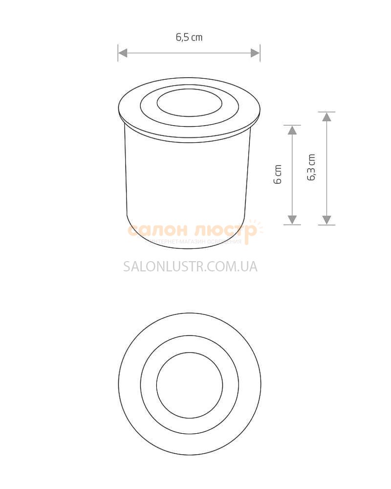 Висота: 6,3 см; діаметр: 6,5 см; лампи: LED х 3 Вт;
