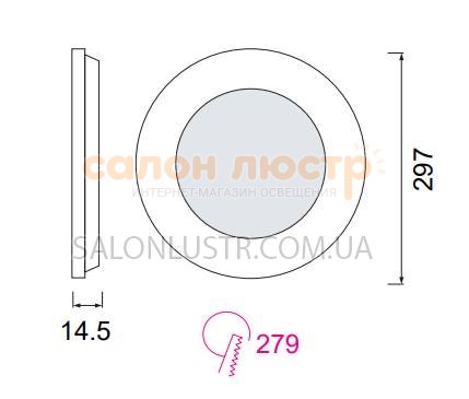 Висота: 14,5 мм; діаметр: 297 мм; лампи: LED х 24 Вт.