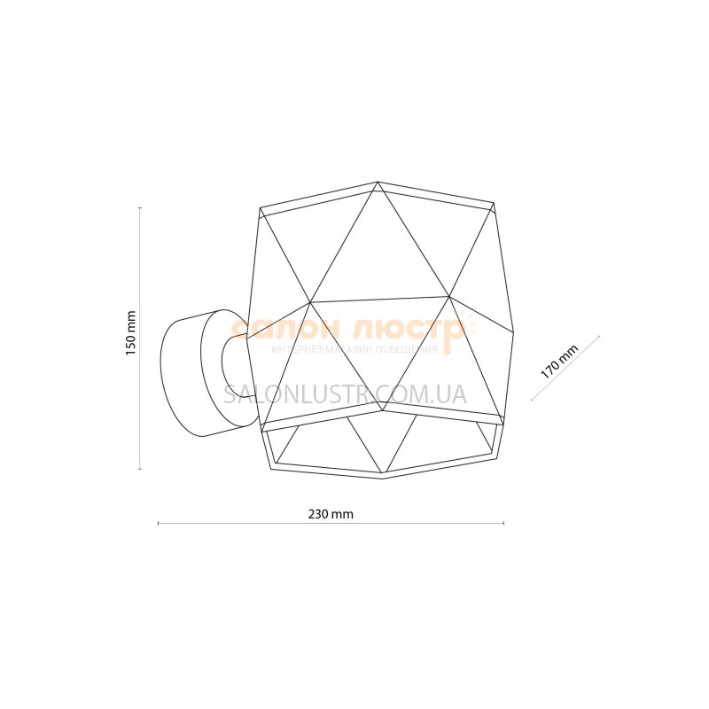 Висота: 15 см; ширина: 17 см; лампи: 1 х E27 х 60 Вт.