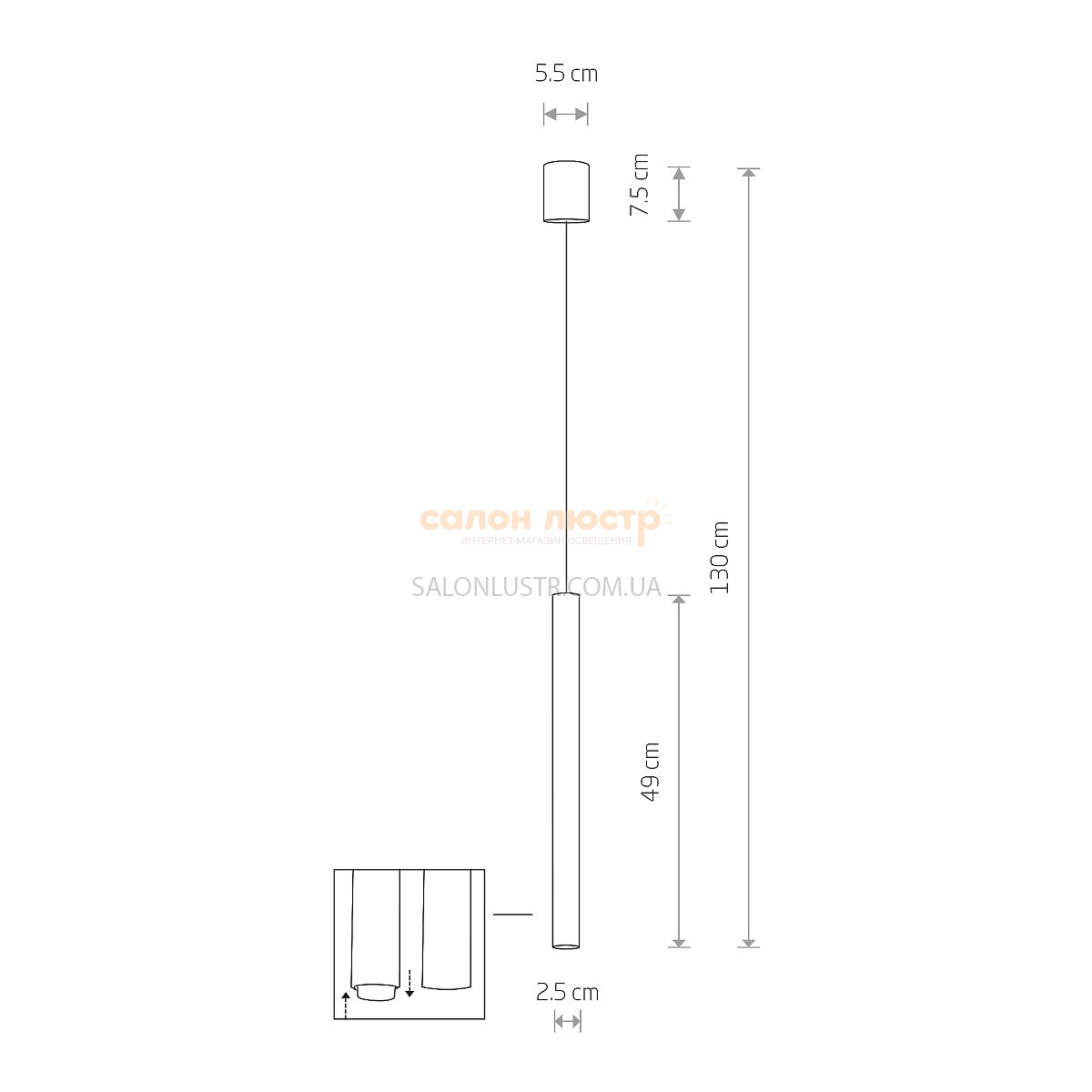 Висота 93-205 см; діаметр: 2,5 см; лампи: 1 х G9 х 10 Вт LED.