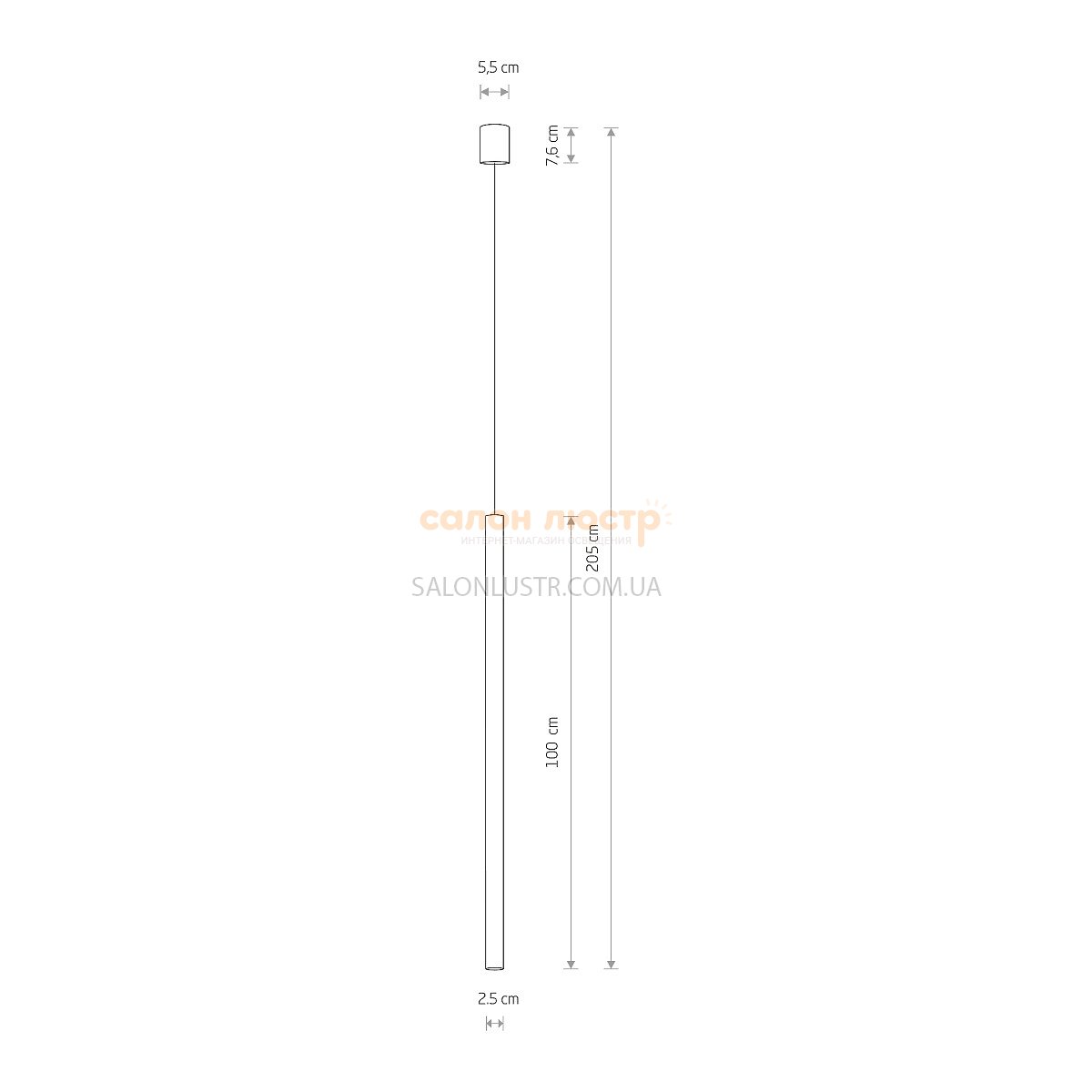 Висота 93-205 см; діаметр: 2,5 см; лампи: 1 х G9 х 10 Вт LED.