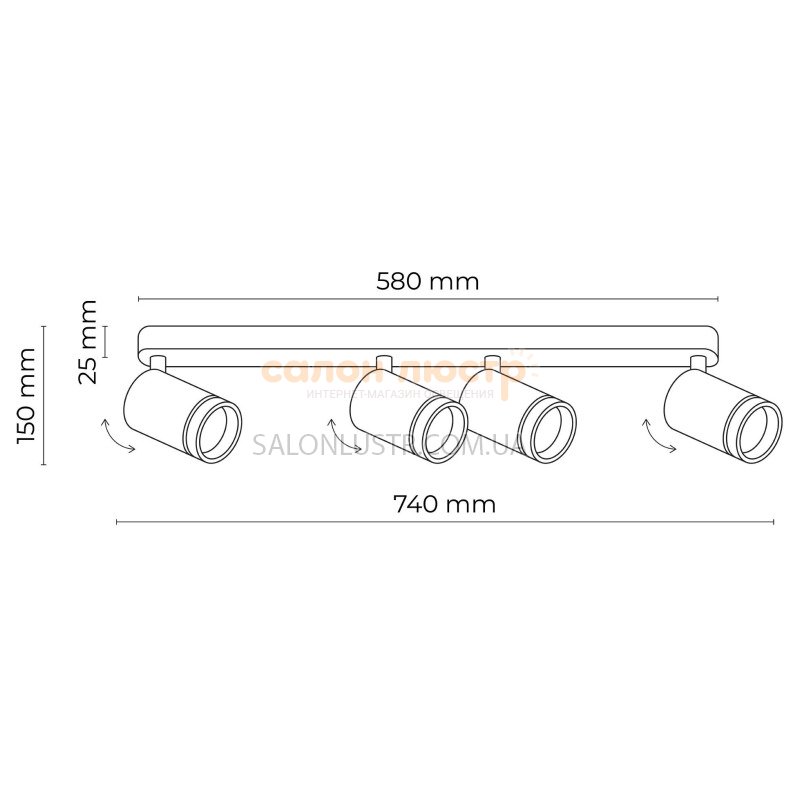 Висота: 15 см; довжина: 74 см; лампа: 4 х GU10 х 10 Вт.