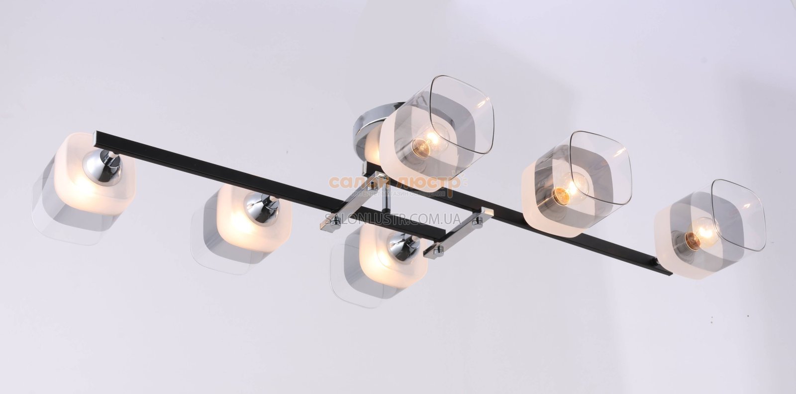 Висота: 17 см; ширина: 90х45 см; лампи: 6 х Е27 х 60 Вт.