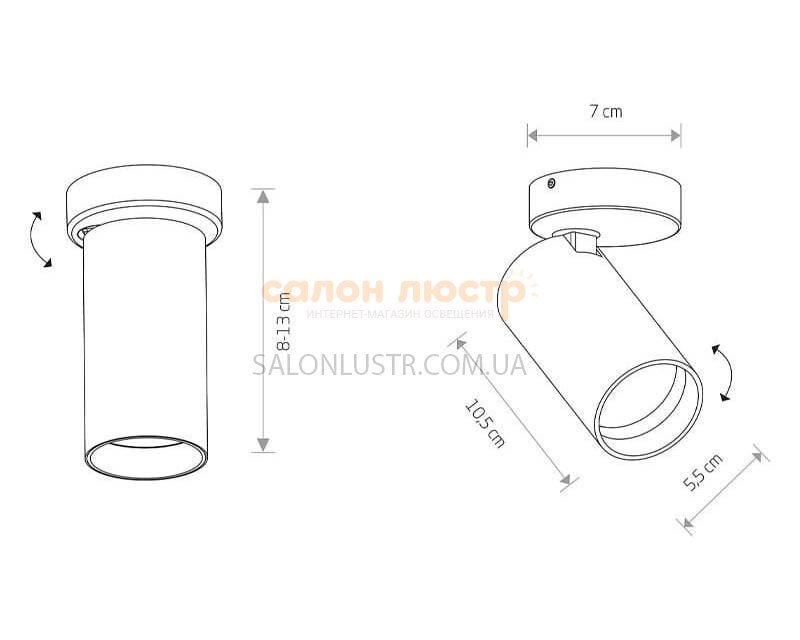 Висота: 9-13 см; ширина: 8,3 см; лампи: 1 x GU10 х 10Вт LED.