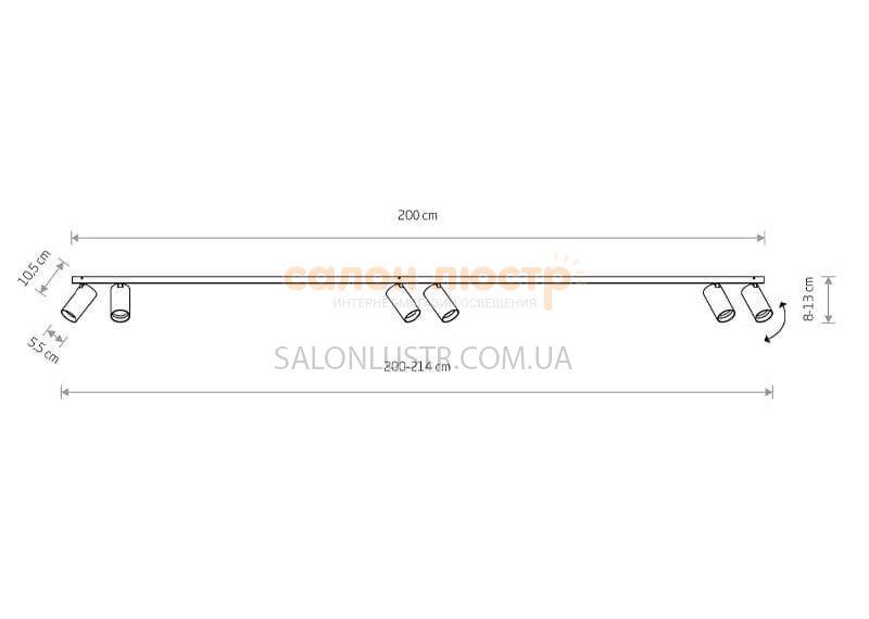 Висота: 8-13 см; довжина: 200-214 см; лампи: 6 x GU10 х 10Вт LED;