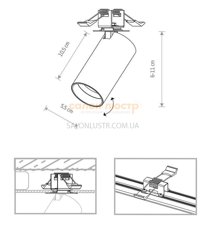 Висота: 8-11 см; ширина: 5,5 см; лампи: 1 x GU10 х 10Вт LED.