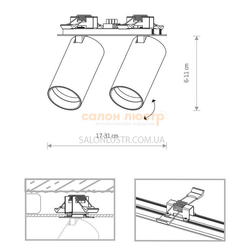 Висота: 6-11 см; ширина: 17-31 см; лампи: 2 x GU10 х 10Вт LED.