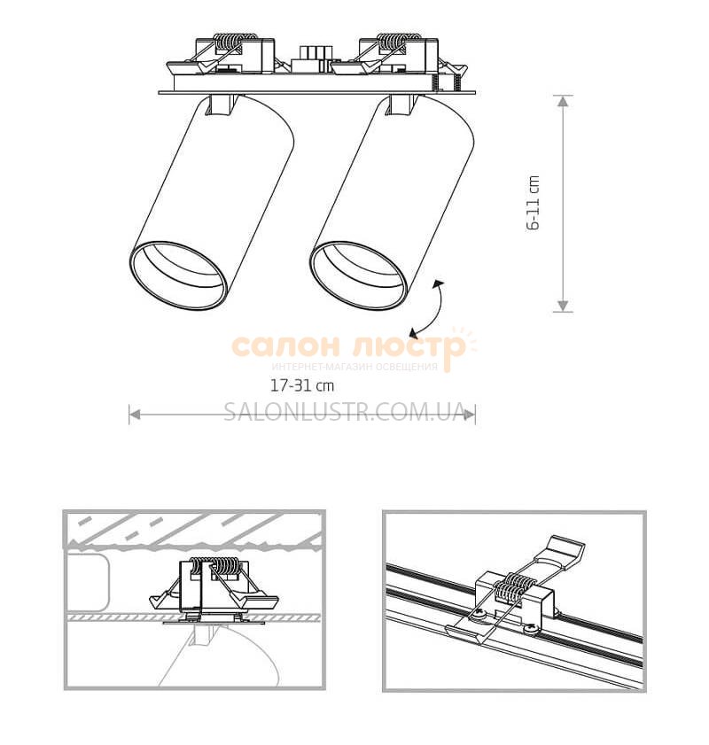 Висота: 6-11 см; ширина: 17-31 см; лампи: 2 x GU10 х 10Вт LED.