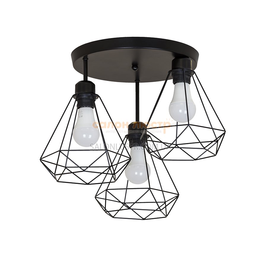 Висота: 34 см; ширина: 35 см; лампи: 3 х Е27 х 60 Вт.
