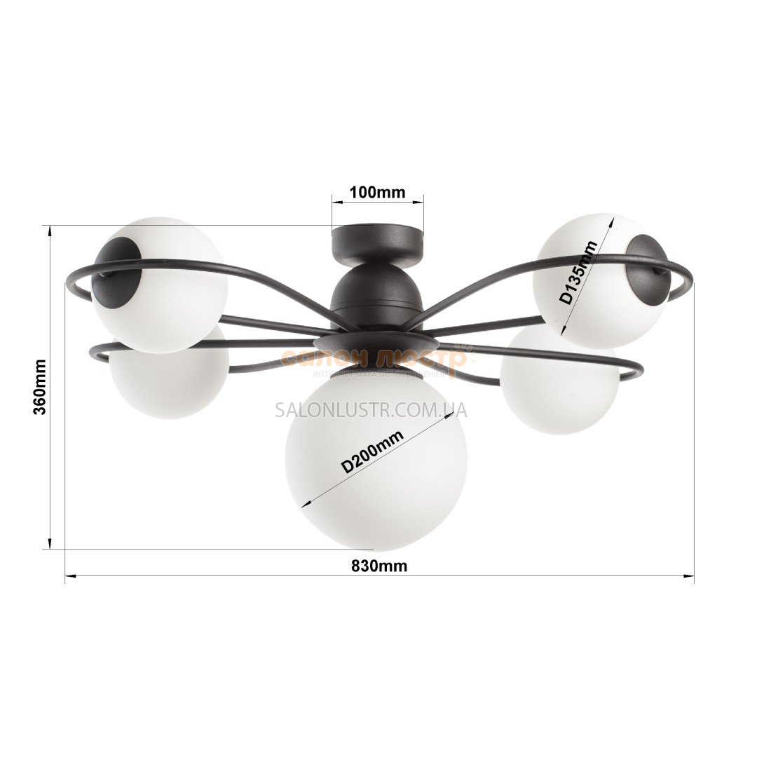 Висота: 36 см; ширина: 83 см; лампи: 5 х Е-27 х 60 Вт.