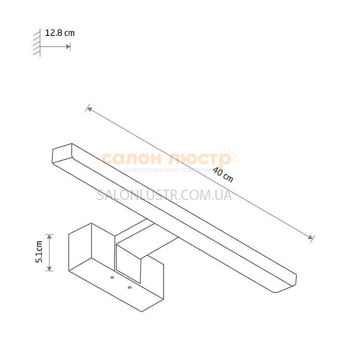 Висота: 5 см; ширина: 40 см; лампи: 1 х LED х 8 Вт(3000К, 600Лм).