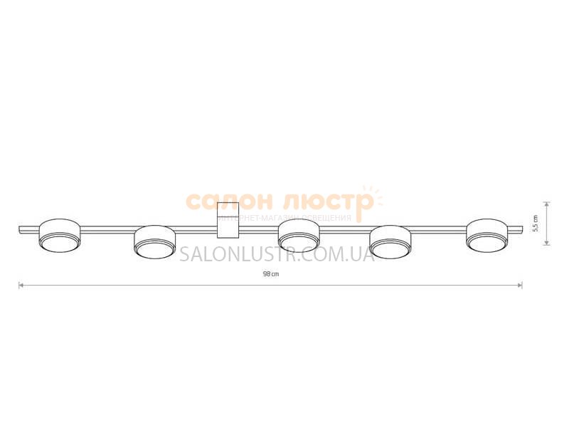 Висота: 5,5 см; діаметр: 98х12 см; лампи: 5 х GX53 8 Вт LED.