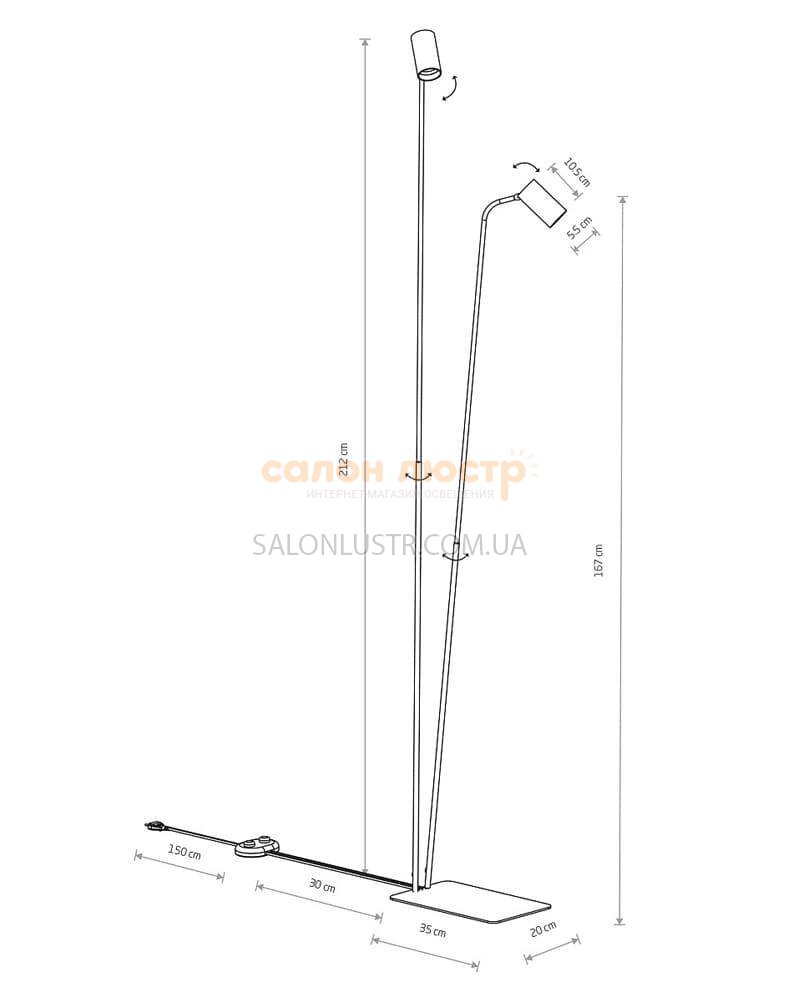 Висота: 212 см; ширина: 20 см; лампи: 2 х GU10 х 35 Вт.