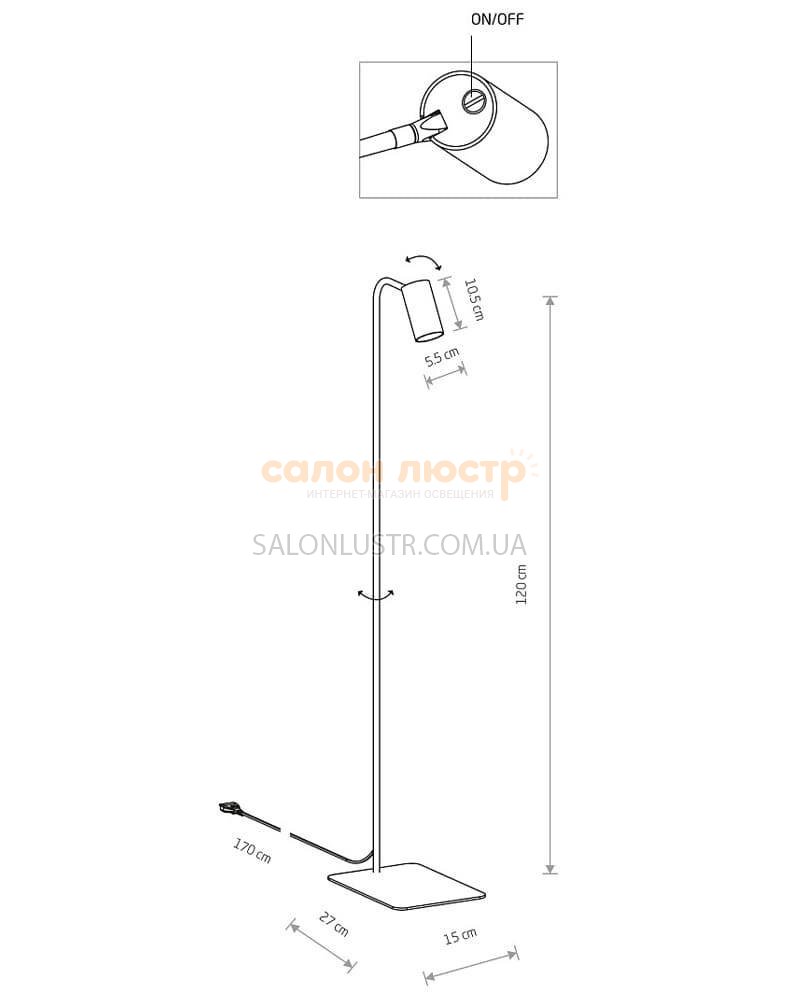 Висота: 120 см; ширина: 15 см; лампи: 1 х GU10 х 35 Вт.