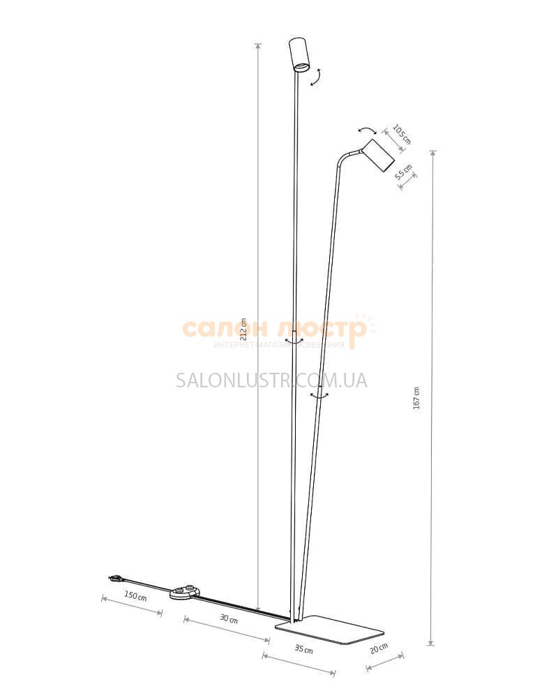 Висота: 212 см; ширина: 20 см; лампи: 2 х GU10 х 35 Вт.