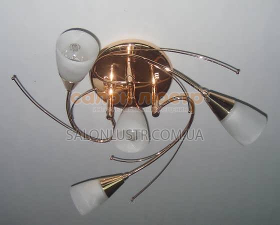 Люстра пристільна виробництва компанії Tinko; Матеріал: метал/стекло; Колір підстави: золото,хром,матовий хром; Колір плафона: білий матовий; Висота: 28 см; діаметр: 66 см; лампи: 4 х Е-14 х 60 Вт.