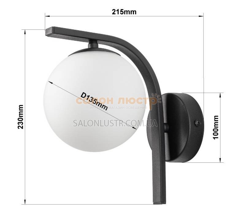Висота: 23 см; ширина: 13,5 см; лампи: 1 х Е-14 х 60 Вт.