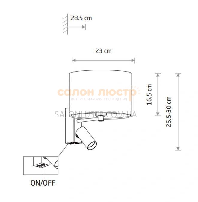 Висота: 30 см; ширина: 23 см; відступ: 28,5 см; лампи: 1 х Е27 х 10 Вт LED+GU10 х 10 Вт LED.