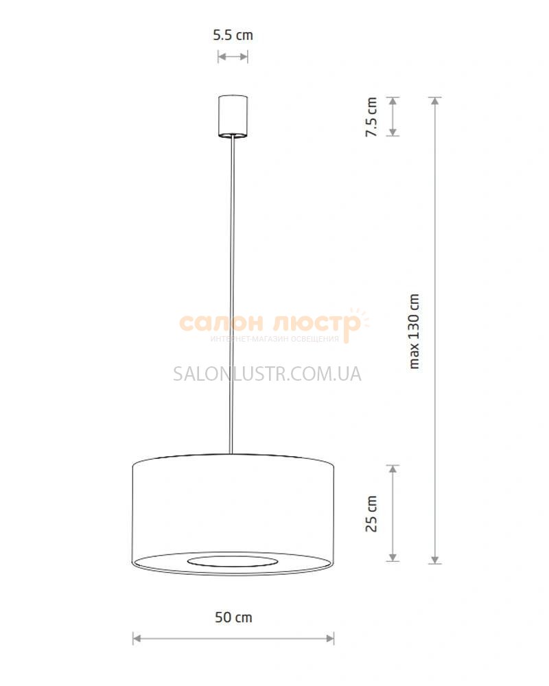 Висота: 50-130 см; діаметр: 50 см; лампи: 1 х E-27 х 25 Вт LED.